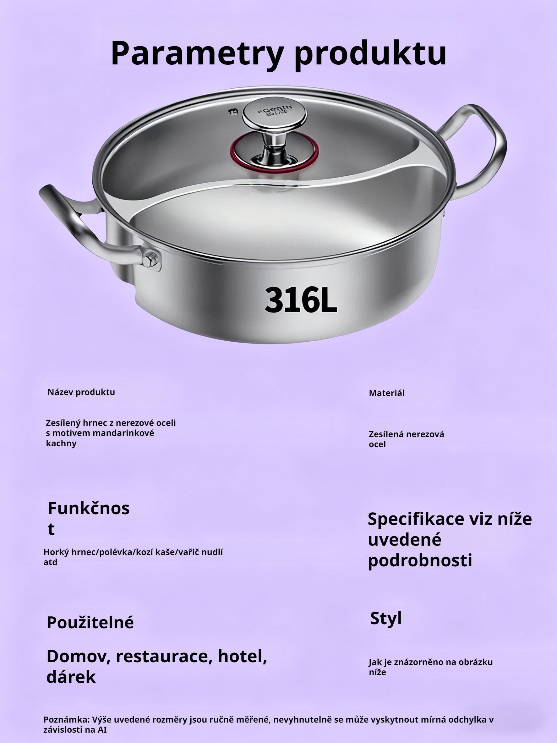 Jednodílný zesílený nerezový hrnec na hotpot s oddělením